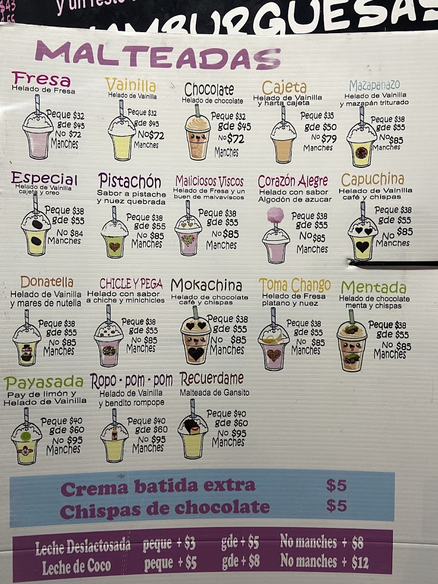 At Del Valle Milkshake Joint, the menu is a playful celebration of classic comfort foods elevated with creative flair. The Hot Dog Especial stands out with its perfectly grilled sausage and thoughtfully layered toppings, delivering a satisfying balance of flavors, while the simpler Hot Dog Sencillo proves that sometimes less is more, with its straightforward, juicy appeal. For those with a sweet tooth, the milkshakes are a highlight: the Toma Chango Malteada de Fresa Plátano Y Nuez combines fruity richness with a nutty crunch, and the Malteada de Vainilla offers a creamy, indulgent classic that feels effortlessly nostalgic. Dessert lovers will be drawn to the Crepa Queso Con Zarzamora, where the tang of blackberry meets the subtle sweetness of cheese in a tender, warm crepe, rounding out a menu that is both approachable and inventive. Each dish and drink is carefully portioned, reasonably priced, and presented with a casual charm that makes the overall experience at this corner of Parroquia and Av. Coyoacán feel delightfully indulgent yet comforting.